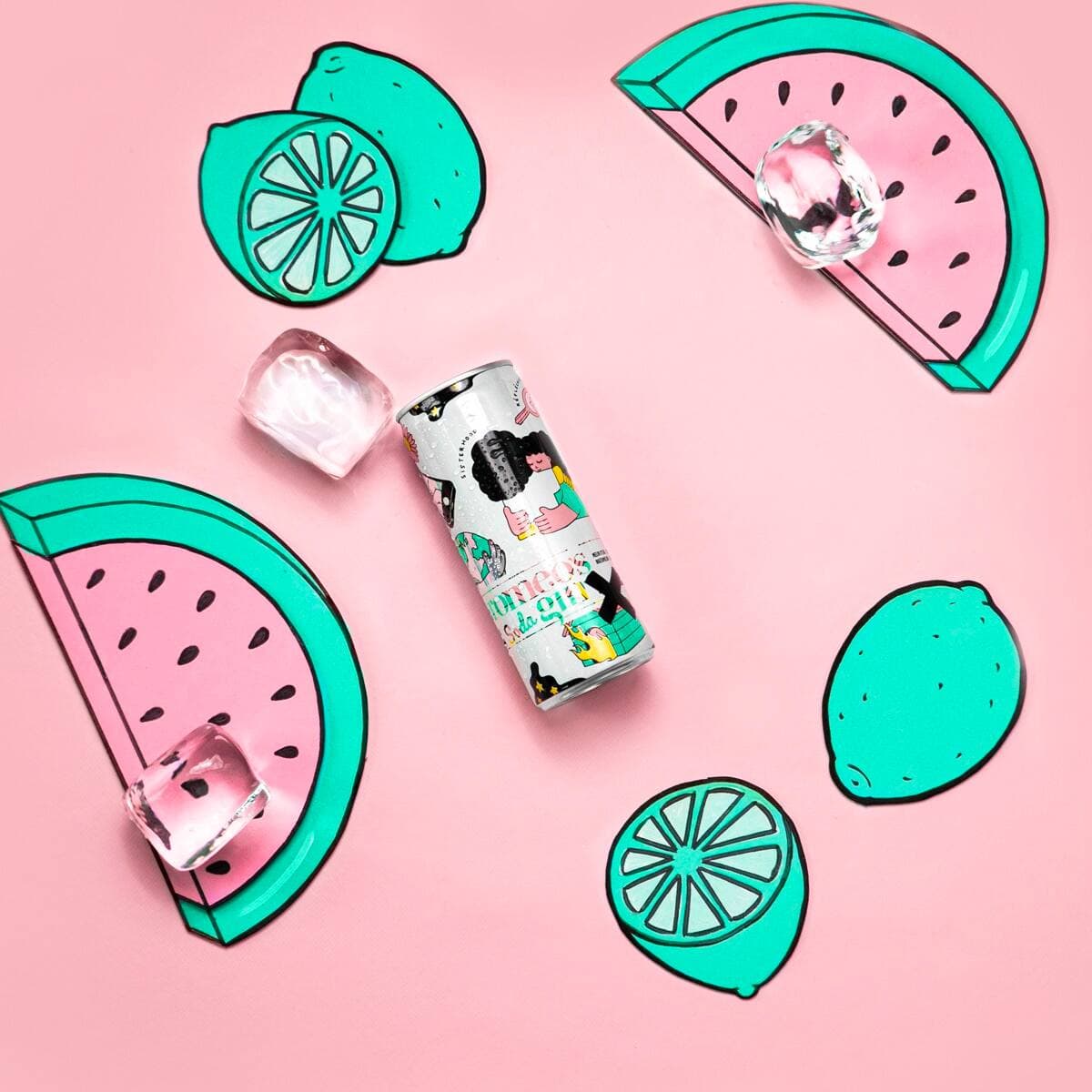 Un nouveau gin soda au melon d’eau et lime par romeo’s gin et illustré par Pony