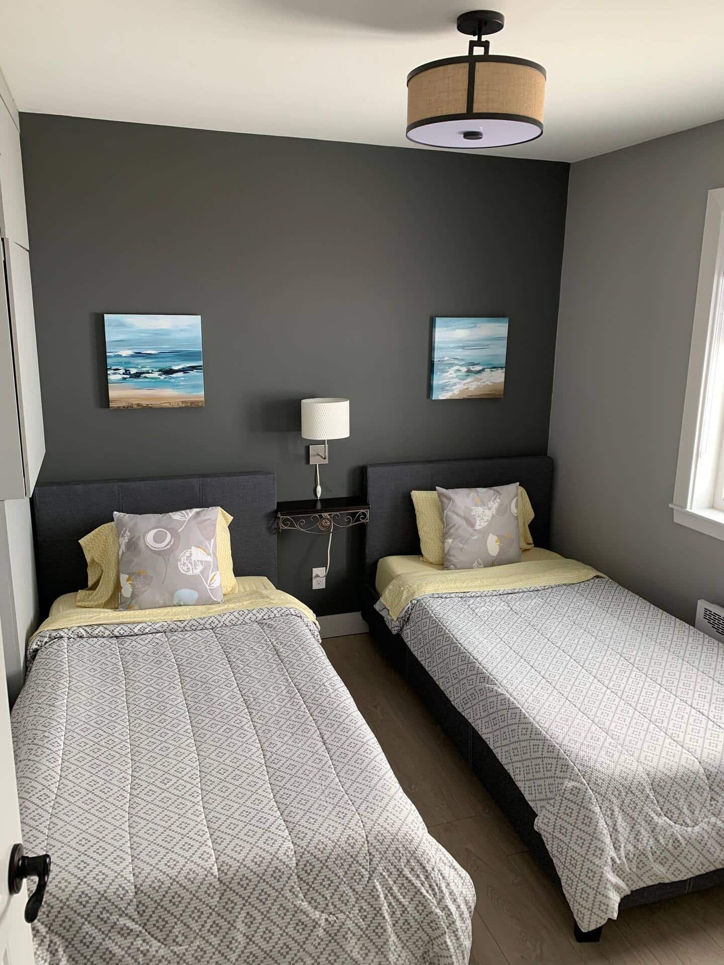 Deux chambres complètes, une avec lit queen et l'autre avec deux lits simples sont mises à disposition.