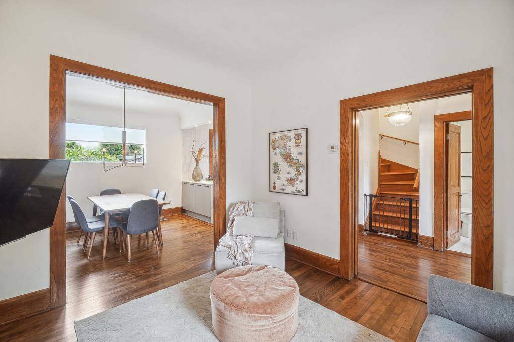Le sous-sol comprend une salle familiale confortable, une salle de lavage pratique et des espaces de rangement supplémentaires. La grande cour arrière gazonnée avec terrasse, orientée sur une ruelle verdoyante, promet des moments d’intimité en famille et entre amis.