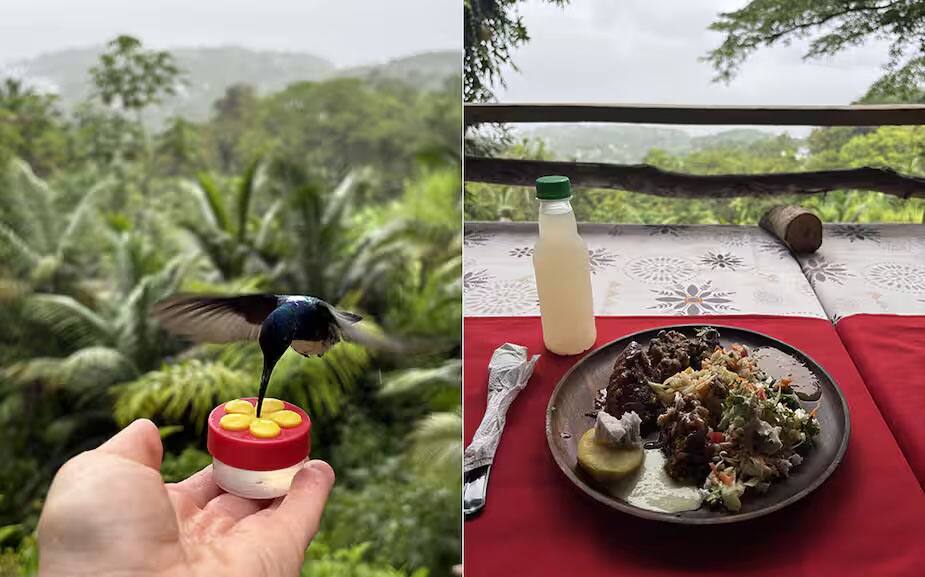À l’entrée de la Main Ridge Forest Reserve, un détour s’impose au « café colibri » et sanctuaire d’oiseaux de l’entrepreneuse Shurland James. On peut y observer les colibris de près, et même les nourrir dans nos mains grâce à de mini-mangeoires. Hypnotisant ! On y propose aussi des spécialités locales à déguster sur une terrasse surplombant les montagnes.