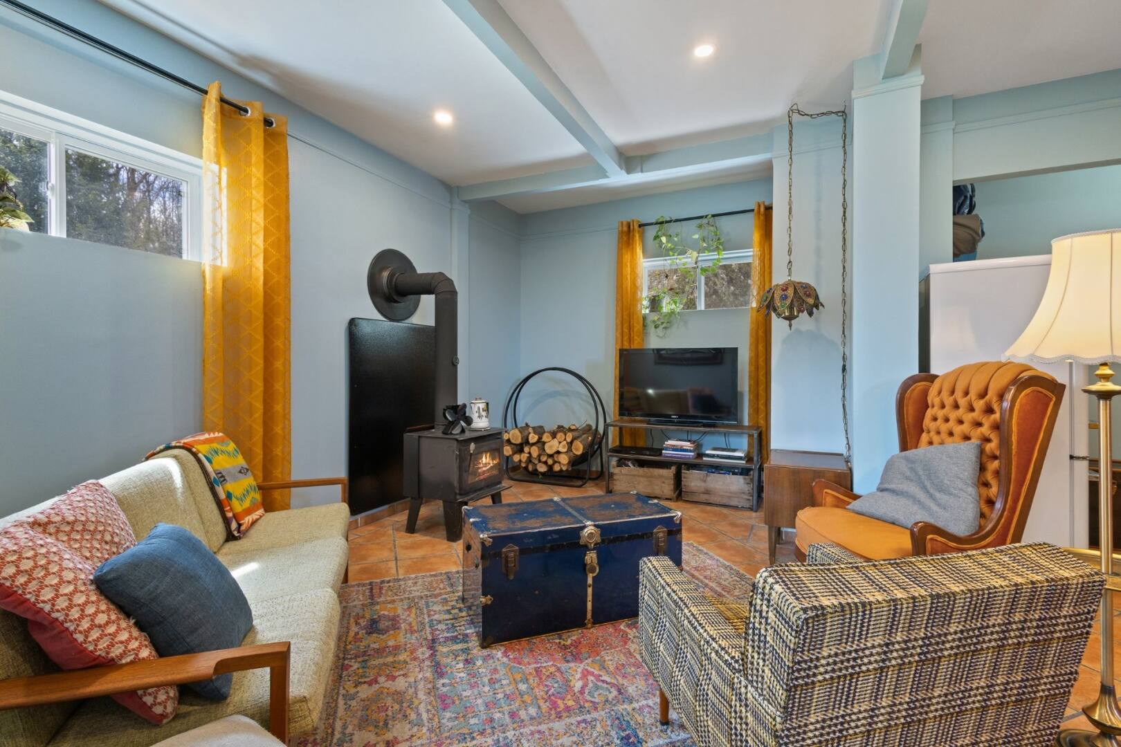 Le salon, avec son foyer au bois, devient rapidement le cœur de la maison.