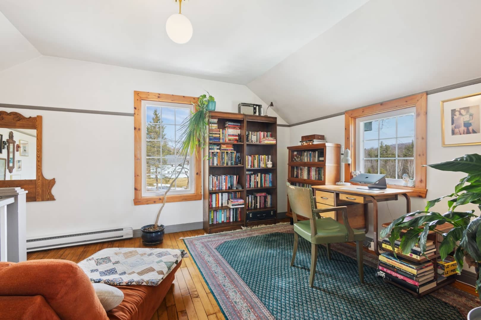 La maison propose deux chambres, mais il y a possibilité d’en aménager une troisième. On y retrouve aussi deux espaces de travail, parfaits pour le télétravail. Une connexion Internet haute vitesse permet de travailler efficacement, même à la campagne.