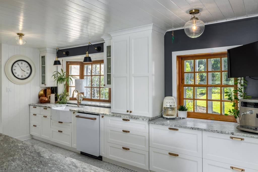 À l’intérieur de la demeure, on retrouve 15 pièces de vie qui proposent une esthétique actuelle. La cuisine à aire ouverte, dotée d’un vaste îlot central, donne le goût de cuisiner de bons repas, en plus de se retrouver au cœur de la maison.
