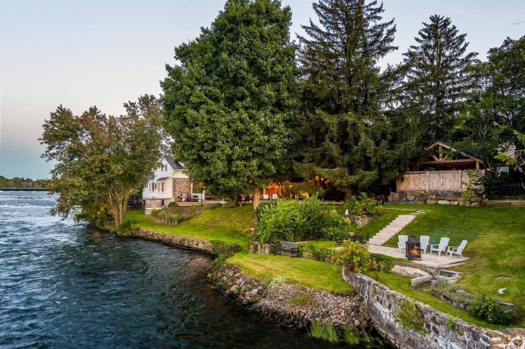 De jolis arbres matures encadrent la propriété et contribuent à créer une atmosphère feutrée, et ce, juste en face de la rivière Richelieu.