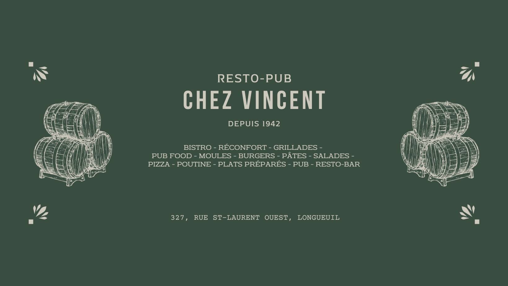 Vous avez un petit craving de moules-frites ? Misez sur Chez Vincent. À mi-chemin entre la taverne et le restaurant, l’endroit sert de copieux plats, dont des moules-frites et des grillades. À déguster avec un bon verre de vin ou une bière bien froide.